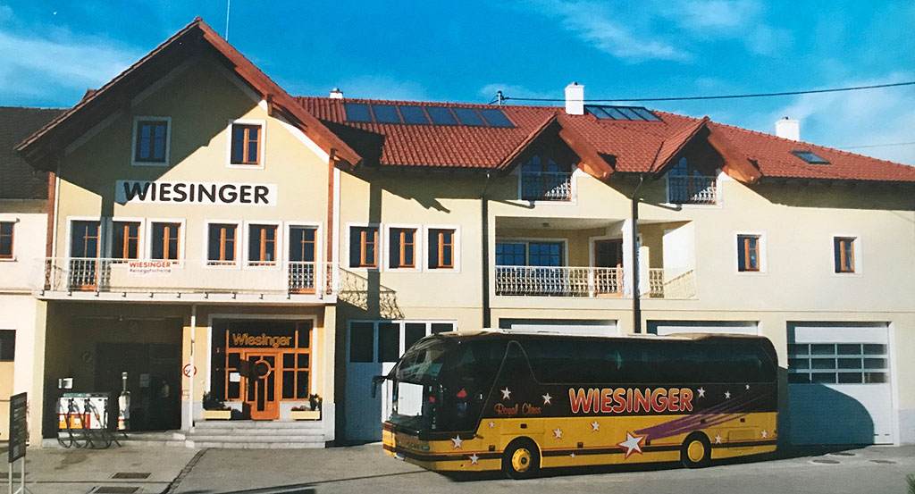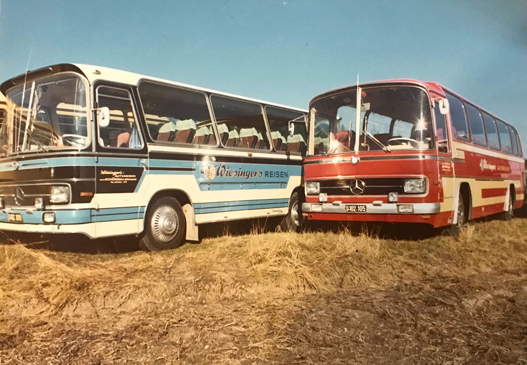 | 1970 | In diesem Jahr verstarb Felix Wiesinger im Alter von 56 Jahren völlig unerwartet an einem Herzinfarkt. Seine beiden Söhne Helmut und Erich übernahmen die Firma. Erich trat Fahrten mit dem Reisebus an und Helmut leitete als gelernter Mechaniker die Werkstatt und das Reisebüro. In den darauffolgenden Jahren wurden viele weitere Busse neu angeschafft und ein weithin bekanntes Unternehmen aufgebaut. |